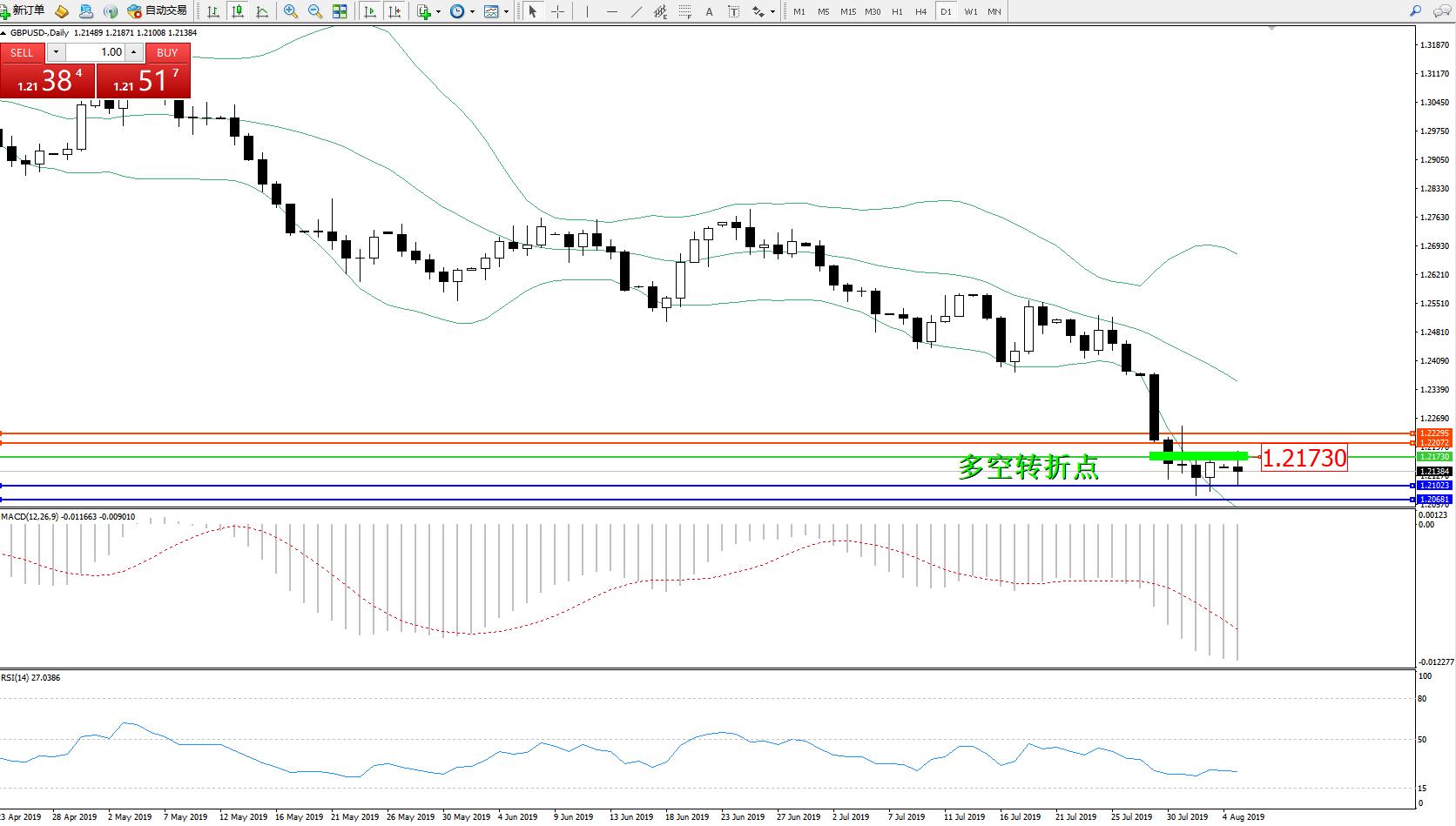 交易策略:1.21730下方看跌,目标1.21023、1.20681