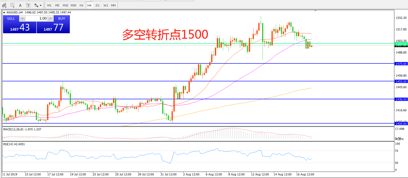 备选策略:在1500.00之下看跌,目标1475.00   1453.00
