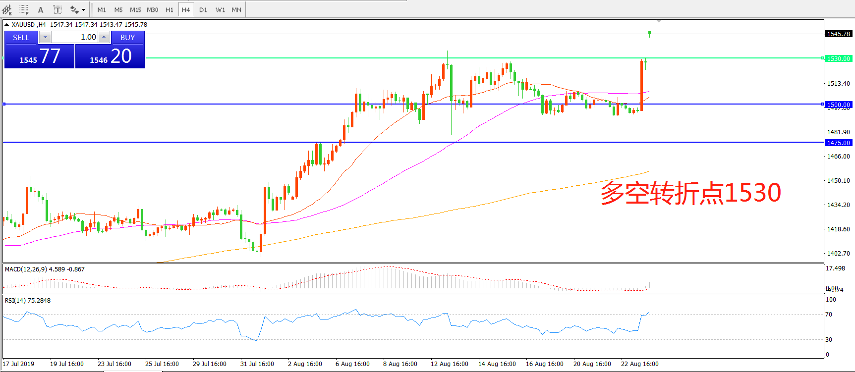 多空转折点:1530.00
