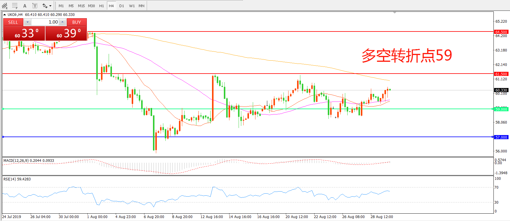 交易策略:在59.00之上看涨,目标61.50 64.50