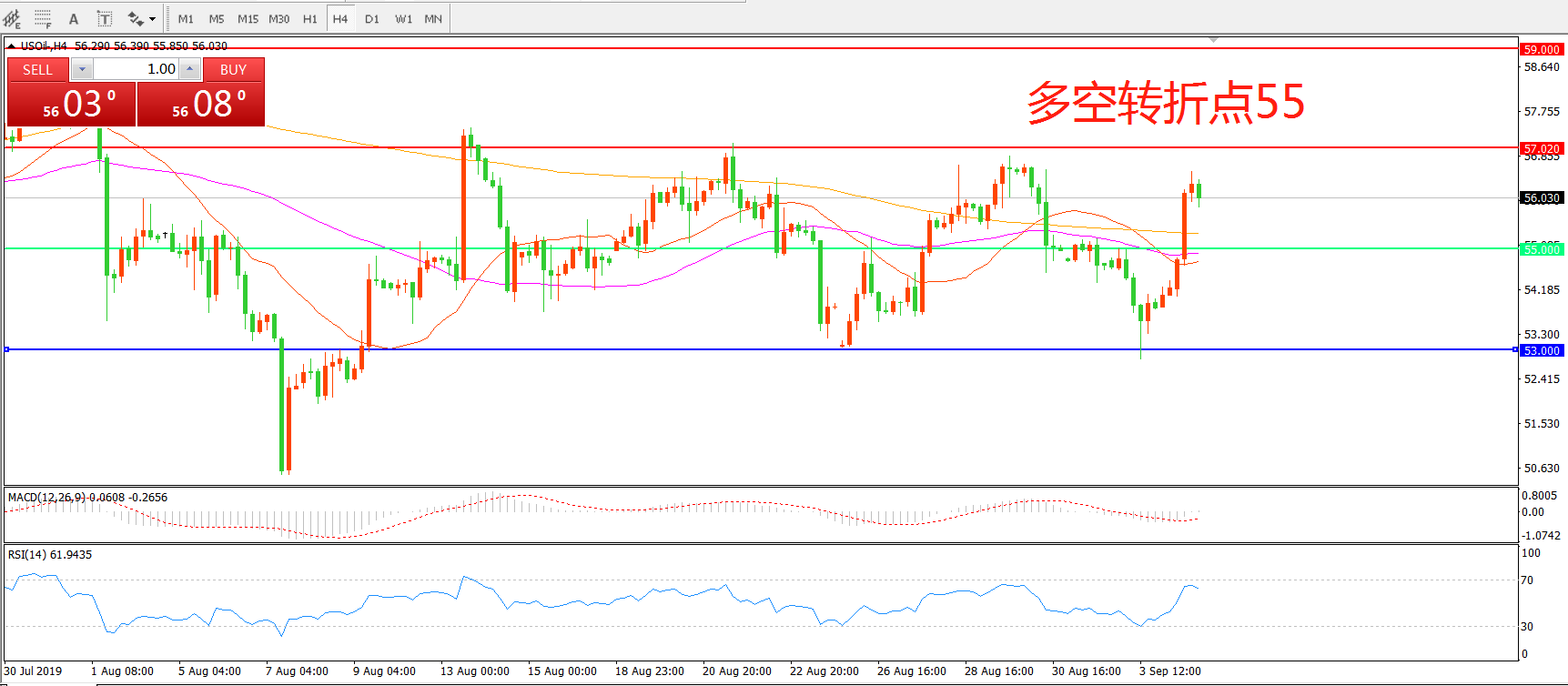 多空转折点:55.00
