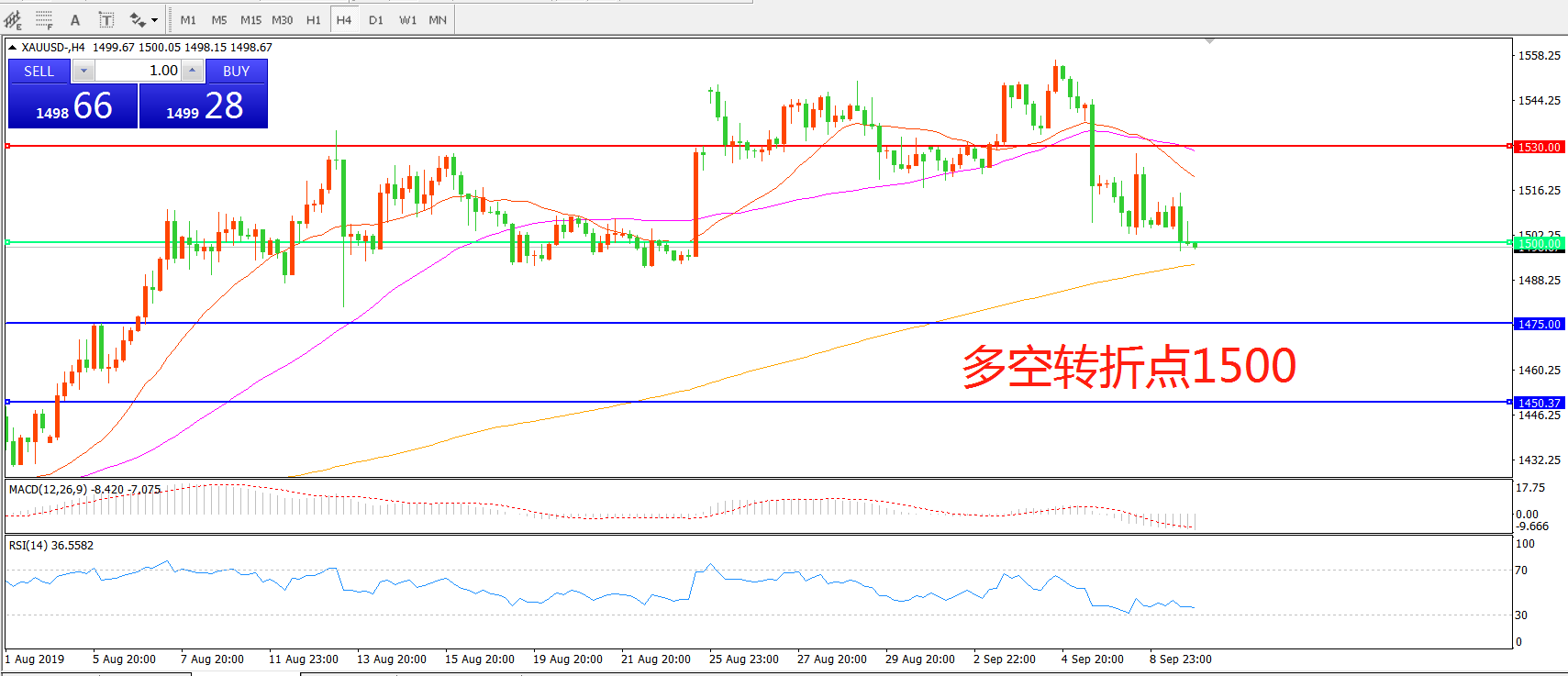 多空转折点:1500.00