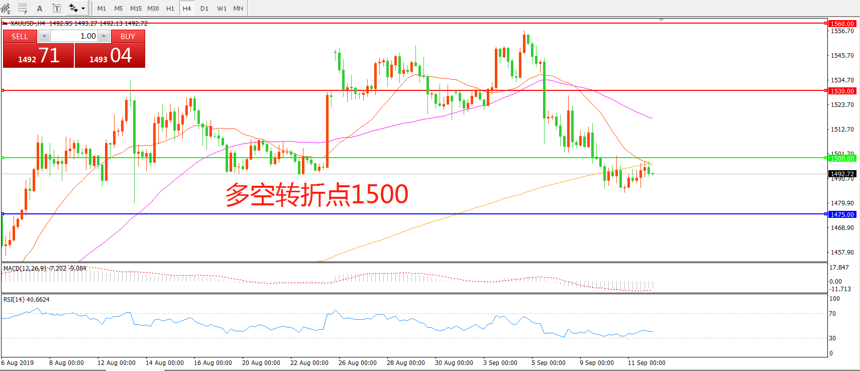 多空转折点:1500.00