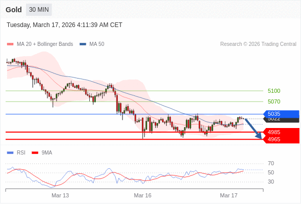 在 5035 之下,看跌,目标价位为 4985 ,然后为 4965 。