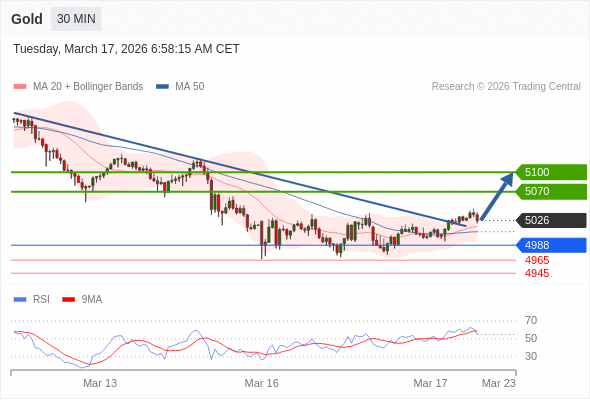 在 4988 之上,看涨,目标价位为 5070 ,然后为 5100 。