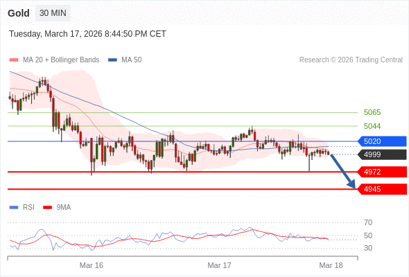 在 5020 之下,看跌,目标价位为 4972 ,然后为 4945 。