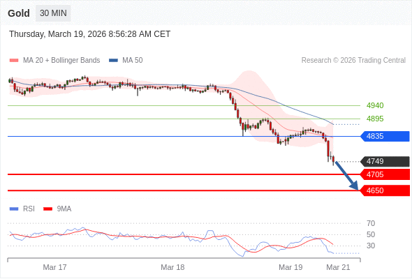 在 4835 之下,看跌,目标价位为 4705 ,然后为 4650 。