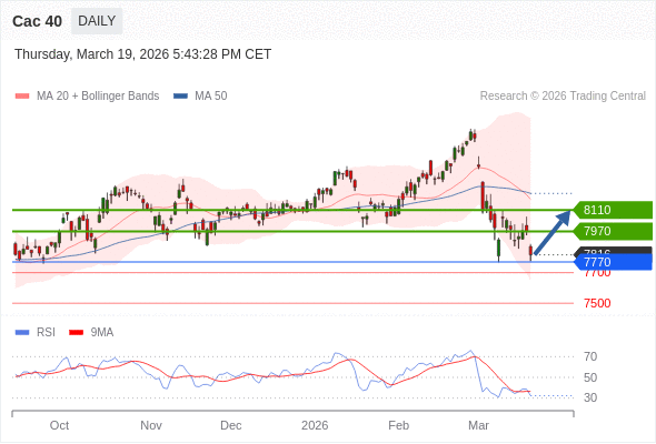 Cac 40 短线: 没有明显变化趋势。