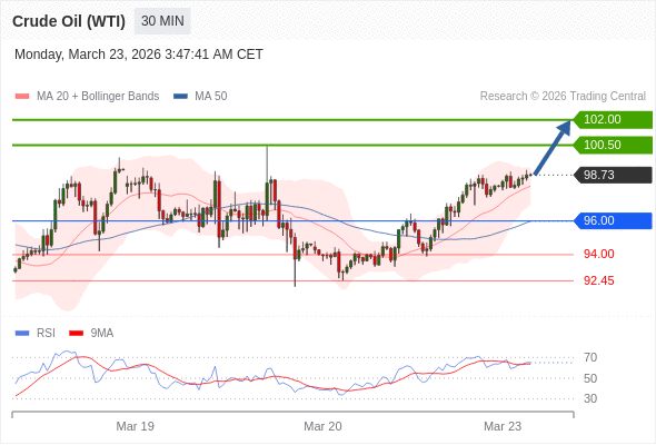 交易策略: 在 96.00 之上,看涨,目标价位为 100.50 ,然后为 102.00 。