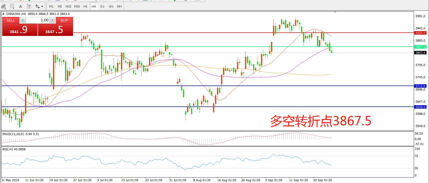 多空转折点:3867.50