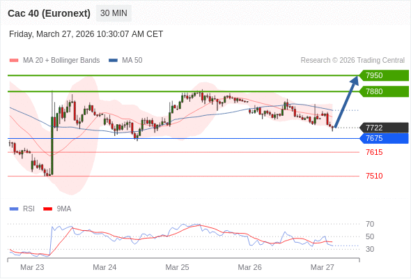 在 7675 之上,看涨,目标价位为 7880 ,然后为 7950 。