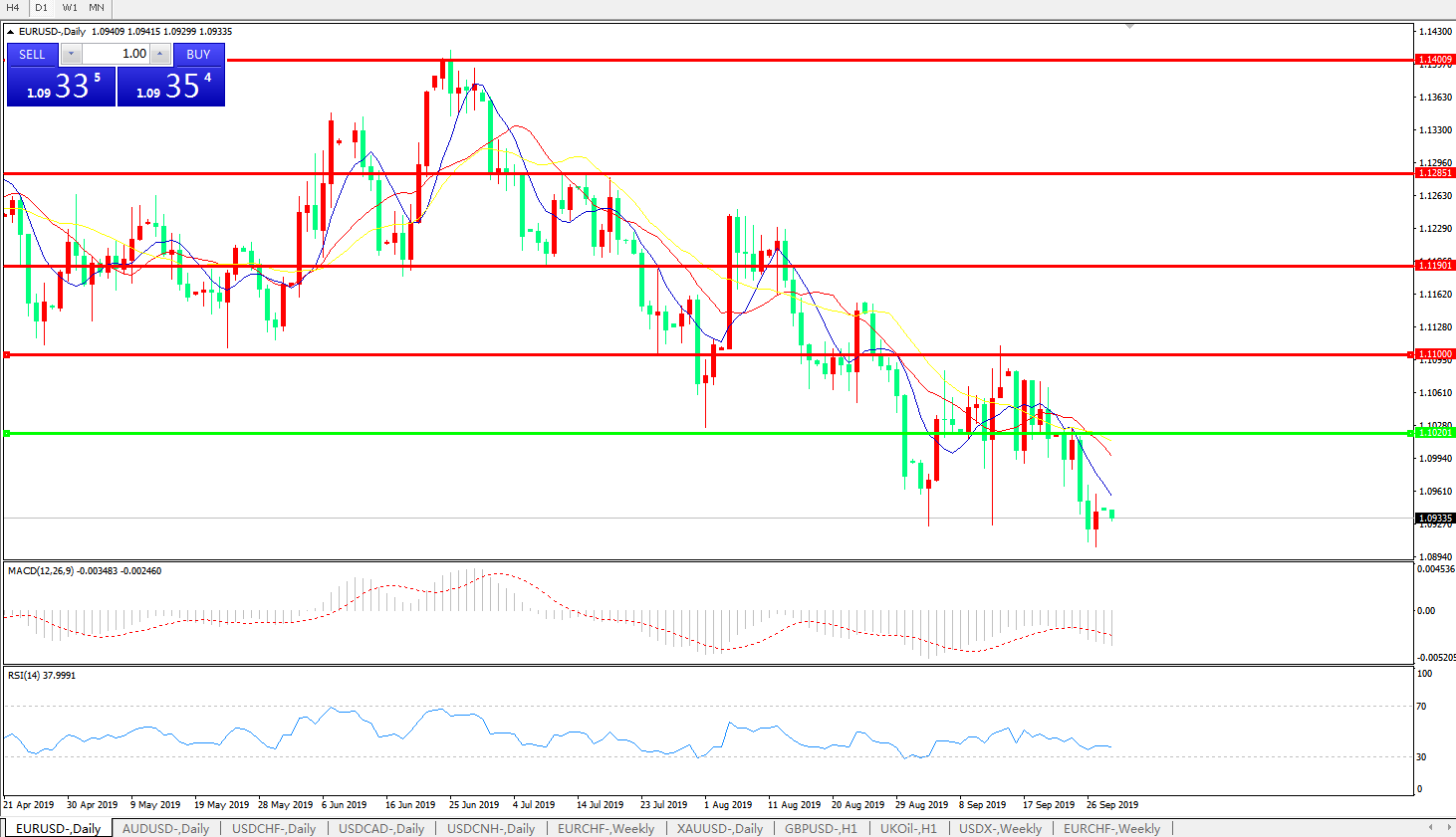 交易策略:1.1020下方看跌,目标1.0800、1.0600