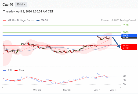 Cac 40 当日内: 期待7820。
