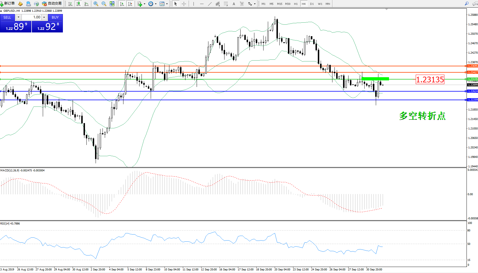交易策略:1.23135下方看跌,目标1.22624、1.22259
