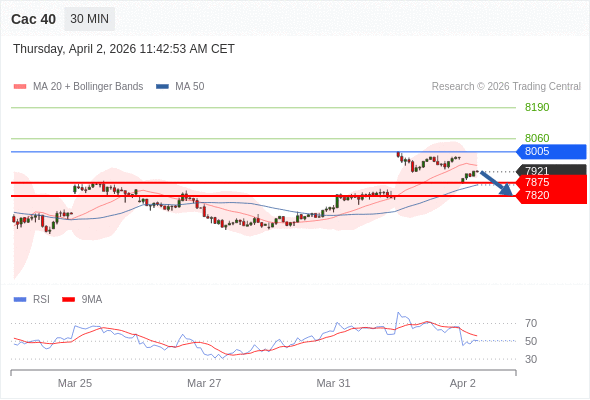 Cac 40 当日内: 短期调整。