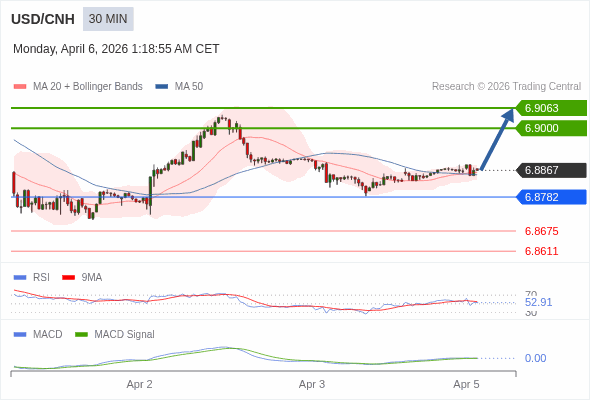 替代方案: 在6.8782以下,期待6.8675和6.8611。