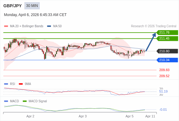 英镑/日元 当日内 : 看涨。