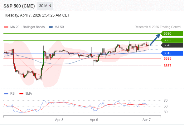 在 6615 之上,看涨,目标价位为 6665 ,然后为 6690 。