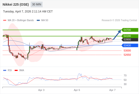 在 53430 之上,看涨,目标价位为 54190 ,然后为 54700 。
