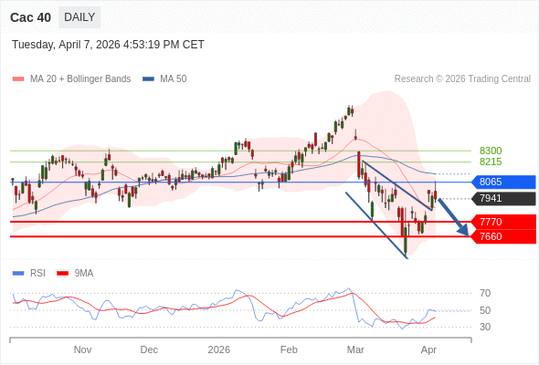 Cac 40 短线: 没有明显变化趋势。