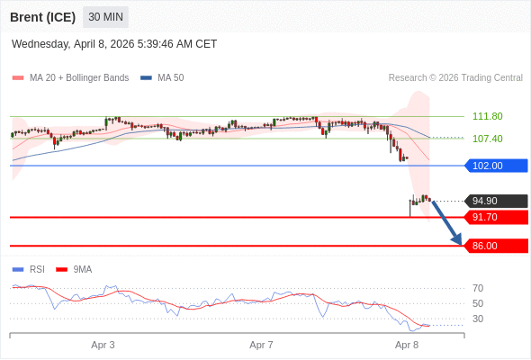 交易策略: 在 102.00 之下,看跌,目标价位为 91.70 ,然后为 86.00 。