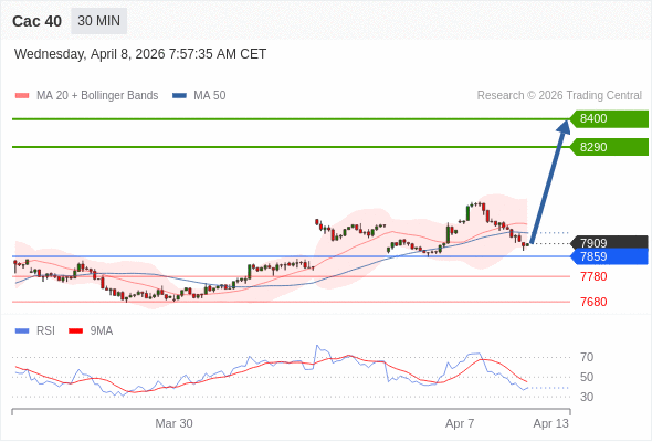 在 7859 之上,看涨,目标价位为 8290 ,然后为 8400 。
