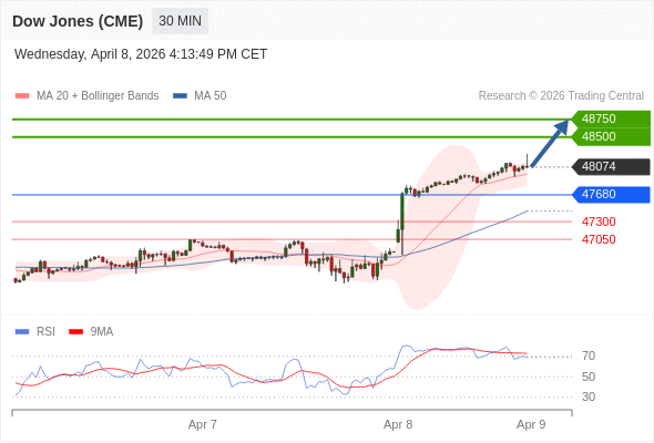在 47680 之上,看涨,目标价位为 48500 ,然后为 48750 。