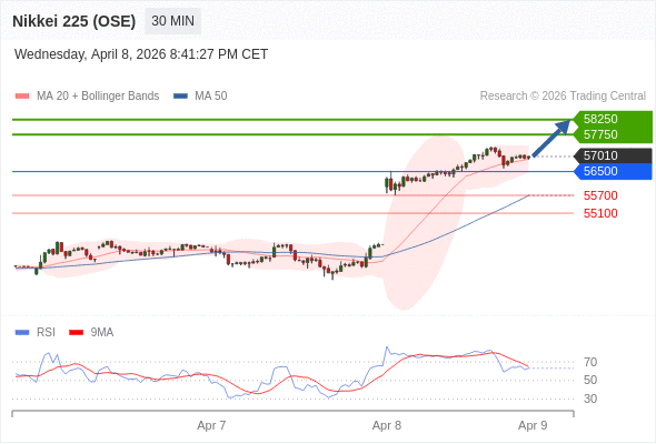 在 56500 之上,看涨,目标价位为 57750 ,然后为 58250 。
