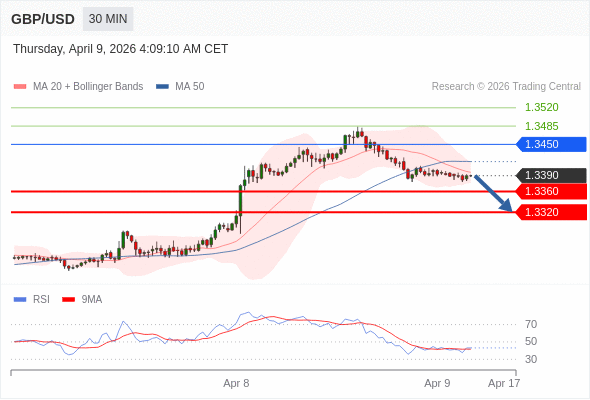 在 1.3450 之下,看跌,目标价位为 1.3360 ,然后为 1.3320 。