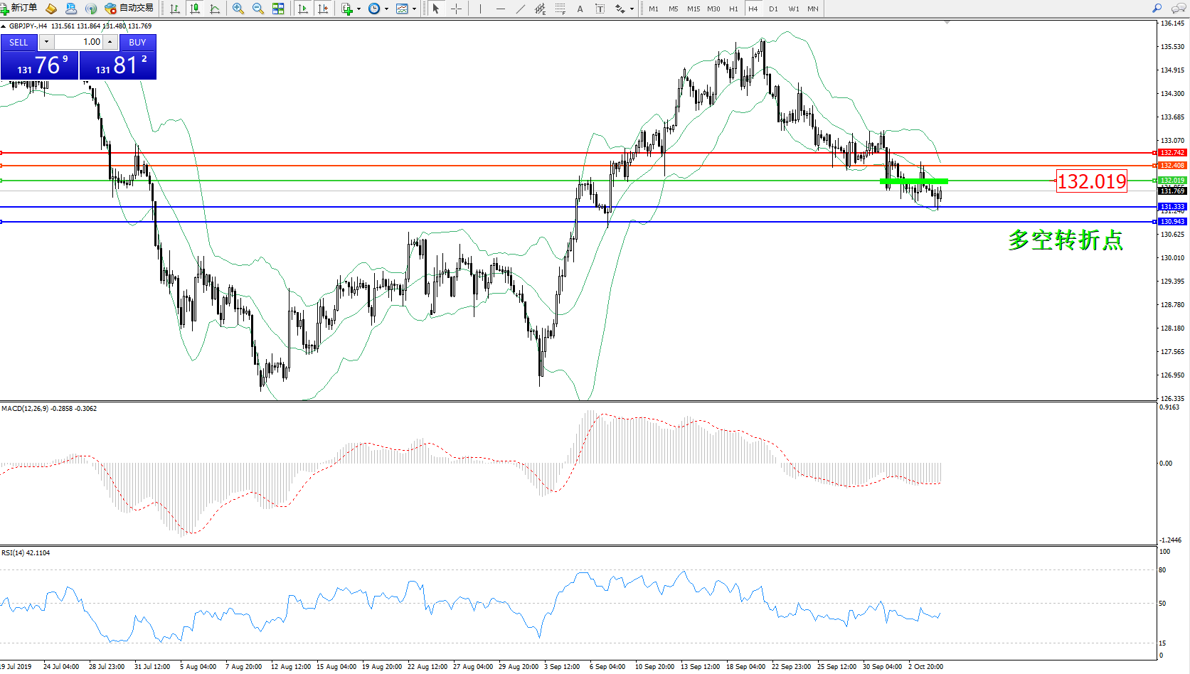 交易策略:132.019下方看跌,目标131.333、130.943