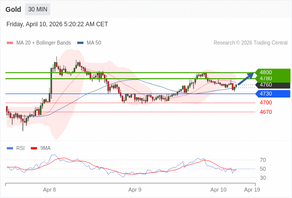 在 4730 之上,看涨,目标价位为 4780 ,然后为 4800 。
