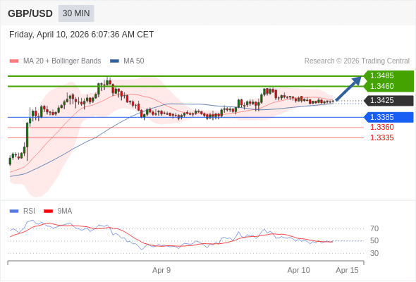 在 1.3385 之上,看涨,目标价位为 1.3460 ,然后为 1.3485 。