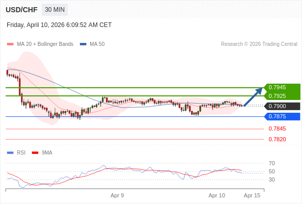 在 0.7875 之上,看涨,目标价位为 0.7925 ,然后为 0.7945 。