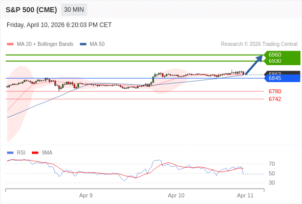 在 6845 之上,看涨,目标价位为 6930 ,然后为 6960 。