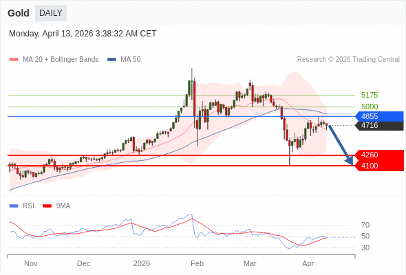 在 4855 之下,看跌,目标价位为 4260 ,然后为 4100 。