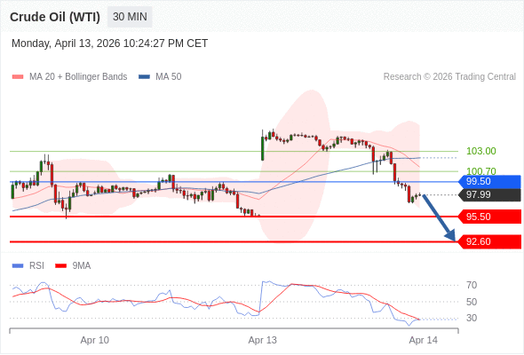 在 99.50 之下,看跌,目标价位为 95.50 ,然后为 92.60 。