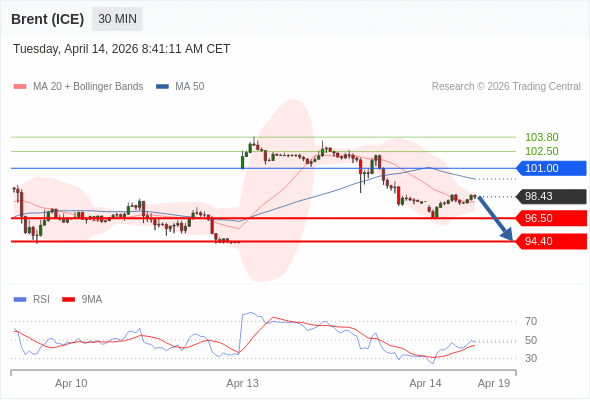 交易策略: 在 101.00 之下,看跌,目标价位为 96.50 ,然后为 94.40 。
