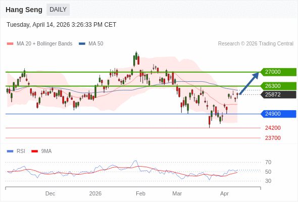 恒生指数 短线: 目标为26300。