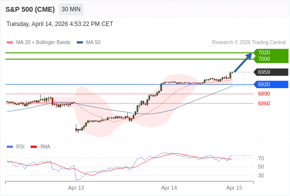 在 6920 之上,看涨,目标价位为 7000 ,然后为 7020 。