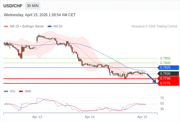 在 0.7825 之下,看跌,目标价位为 0.7790 ,然后为 0.7775 。