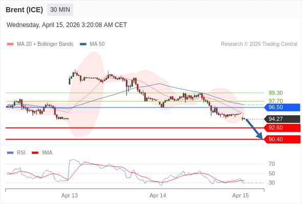 在 96.50 之下,看跌,目标价位为 92.60 ,然后为 90.40 。