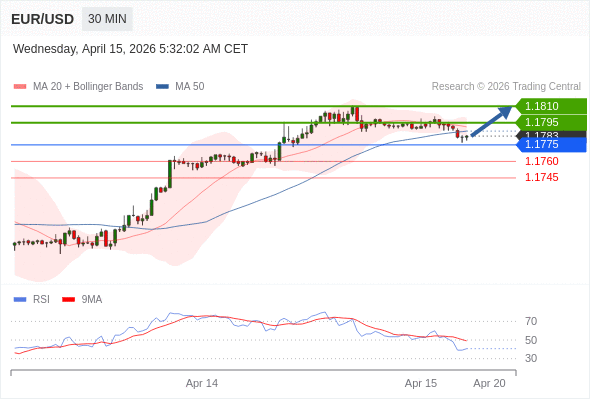在 1.1775 之上,看涨,目标价位为 1.1795 ,然后为 1.1810 。