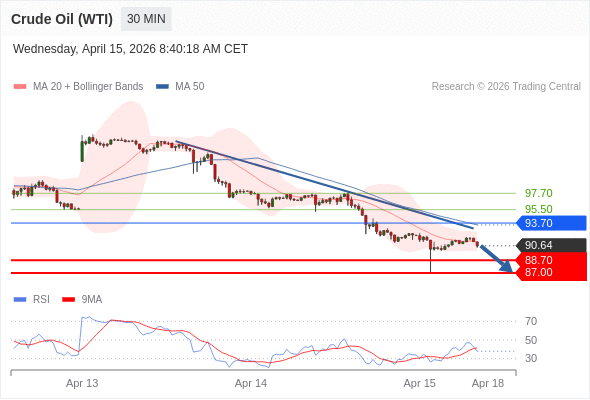 在 93.70 之下,看跌,目标价位为 88.70 ,然后为 87.00 。