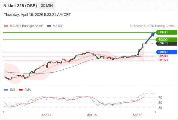 日经225股指期货 (OSE) 当日内: 目标位为60680。