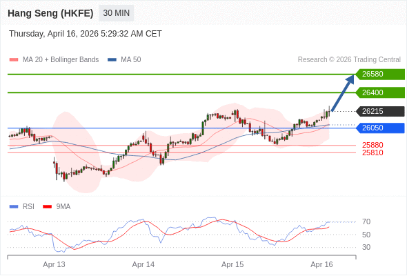 在 26050 之上,看涨,目标价位为 26400 ,然后为 26580 。