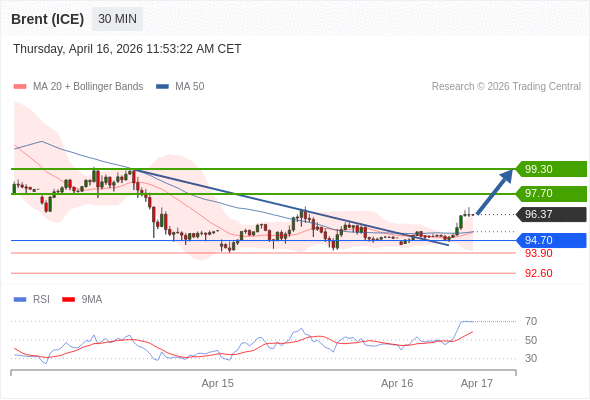 在 94.70 之上,看涨,目标价位为 97.70 ,然后为 99.30 。
