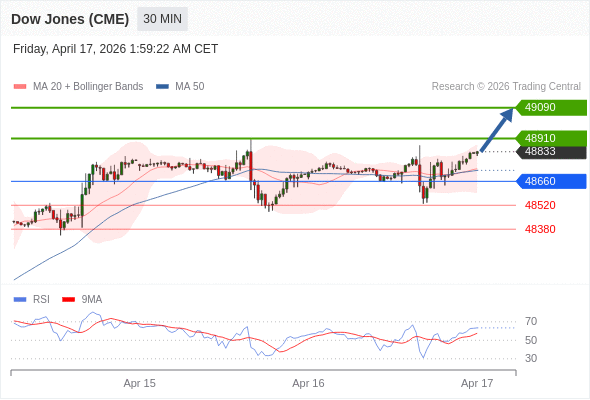 在 48660 之上,看涨,目标价位为 48910 ,然后为 49090 。