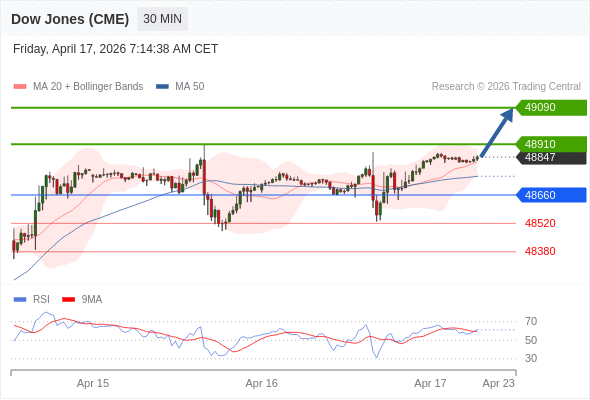 在 48660 之上,看涨,目标价位为 48910 ,然后为 49090 。