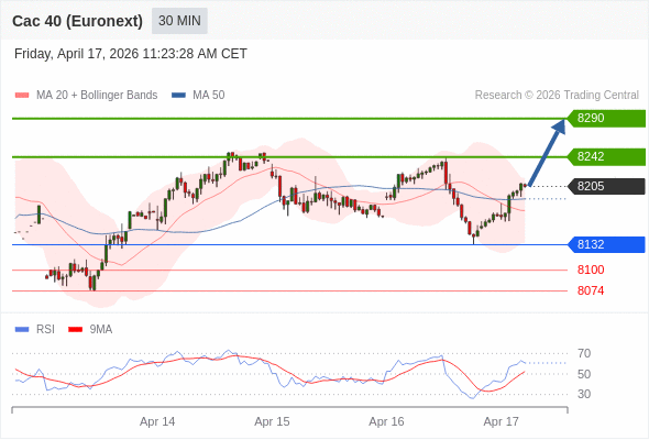 在 8132 之上,看涨,目标价位为 8242 ,然后为 8290 。