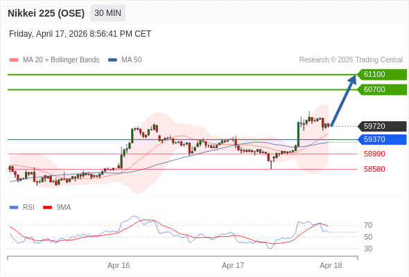在 59370 之上,看涨,目标价位为 60700 ,然后为 61100 。